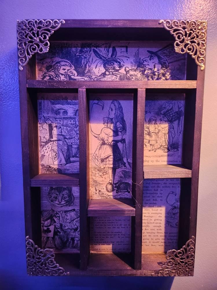 Super cool little magical curio shelf that doesn't even need any curios it's so neat on it's own. Great artistry and quality craftsmanship went into creating this piece. I love it! Excellent customer service too. Thank you!